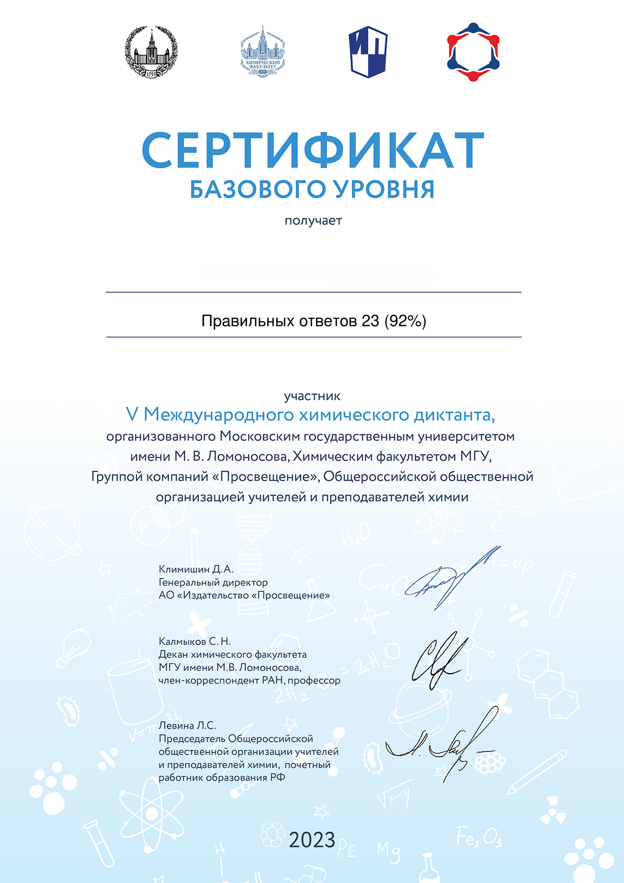Приглашаем всех встретиться в формате химического диктанта в следующем году, вновь испытать себя, расширить свой кругозор и очередной раз убедиться в том, что химия — это наука полезная и интересная!