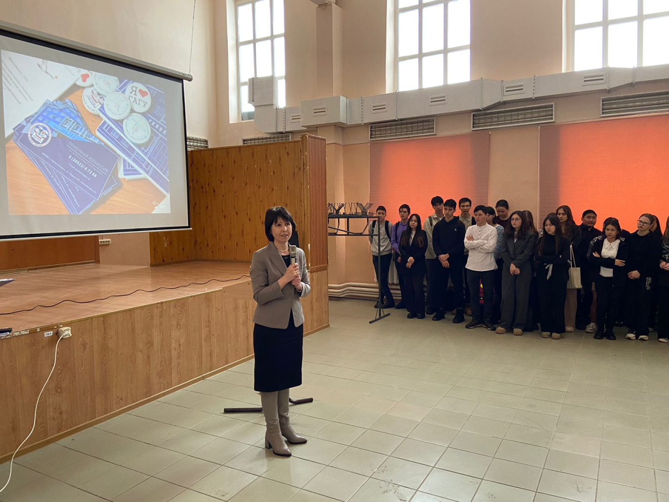Участников мероприятия поприветствовала проректор по учебной работе Т.К. Куриленко: «Сегодня важный день! Чемальский район - первый район нашей республики, в который мы приехали с профориентационным мероприятием. Наш ГАГУ славится богатой историей, сильным профессорско-преподавательским составом, студентами, которые добиваются больших высот. Сегодня вы увидите, что ГАГУ может предложить вам множество интересных направлений для получения как высшего, так и среднего профессионального образования».