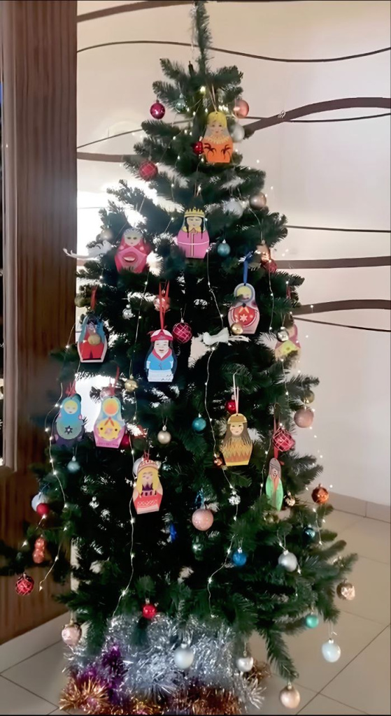 Изготовление елочных игрушек - традиция давняя, еще у Льва Толстого во дворе делали игрушки своими руками, и это было любимым занятием детворы. А что первое приходит на ум, когда говорят про русскую народную игрушку? Конечно же, МАТРЁШКА! Один из самых узнаваемых символов русской культуры. Эта яркая расписная кукла с круглыми щечками и широкой юбкой давно полюбилась не только в России, но и во всем мире. Именно её участники мастерской выбрали в качестве основы новогодней игрушки, оформив в стиле и цветах своих народов. Особую теплоту и интерес событию придало то, как с большим энтузиазмом и творческим подходом, ребята, объединяя разные культуры в русском символе создавали свои игрушки.