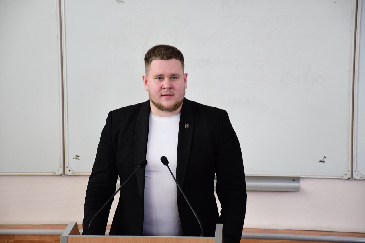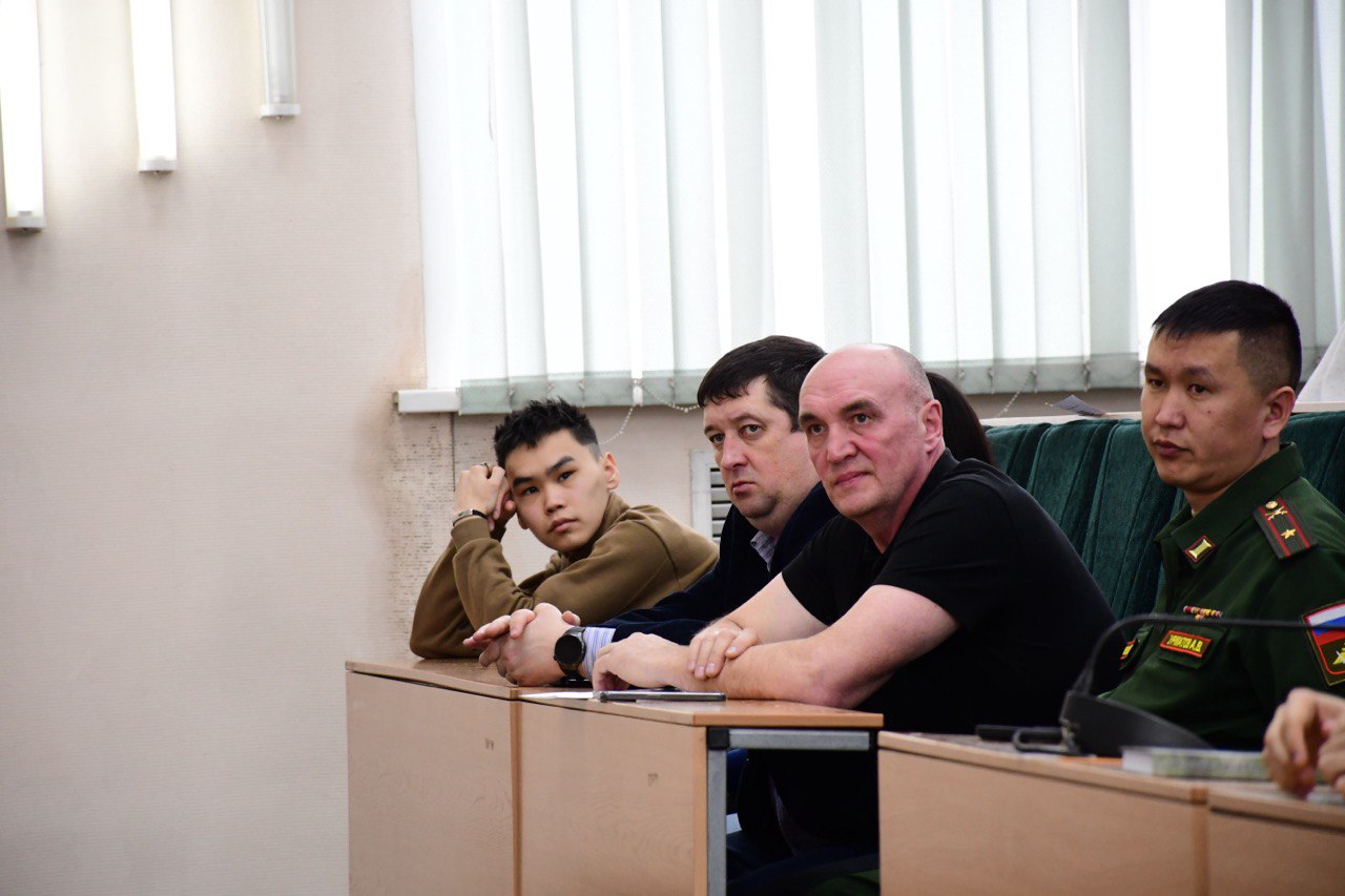 Перед присутствующими выступил начальник Военного учебного центра при Горно-Алтайском государственном университете Айас Урматов, участник специальной военной операции, награжден Орденом Мужества, медалью «За храбрость» II степени, медалью «За боевые отличия», медалью «За воинскую доблесть».