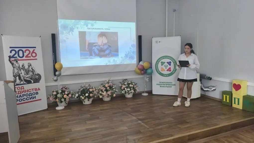 Тупикина Полина (241 гр., БОУ РА «Республиканский классический лицей») с работой «Особенности взаимоотношений в семье с младшими братьями и сёстрами». Научный руководитель — к. пс. н., доцент Гонохова Т. А.