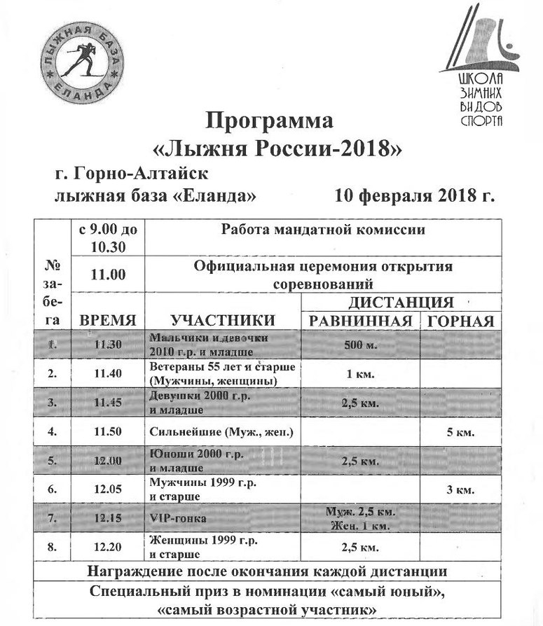 10 февраля 2018 г. в урочище Еланда состоятся Всероссийские массовые соревнования "Лыжня России 2018".