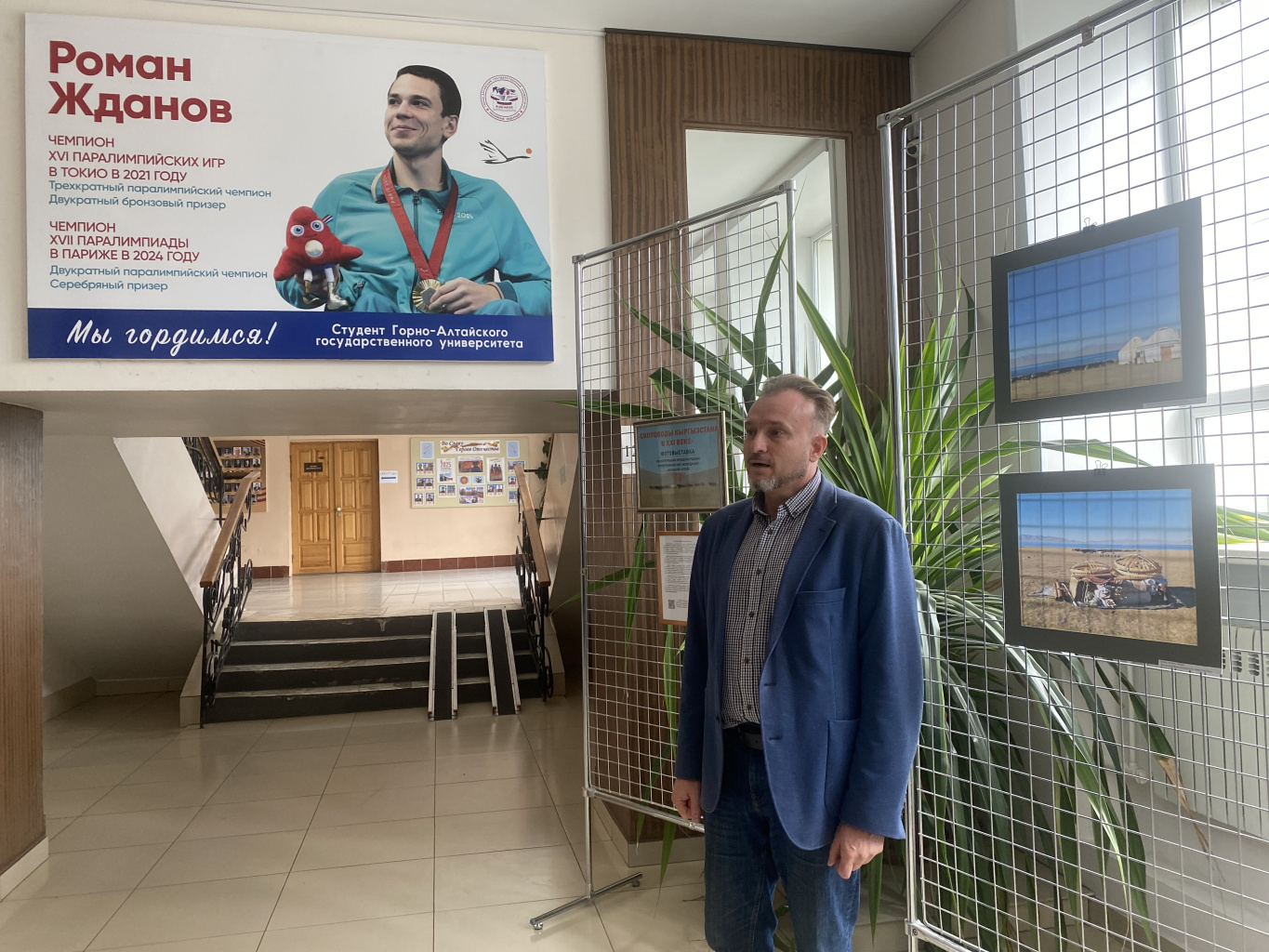 Асанканов А. А. доктор исторических наук, профессор, академик Национальной академии наук Кыргызской Республики, директор Института истории, археологии и этнологии НАН КР тепло поприветствовал участников, высказался о важности подобного рода совместных мероприятий. Назаров И. И. (руководитель экспедиции) директор ИИМО АлтГУ поблагодарил руководство вуза за душевный приём и предоставленную возможность организовать фотовыставку.